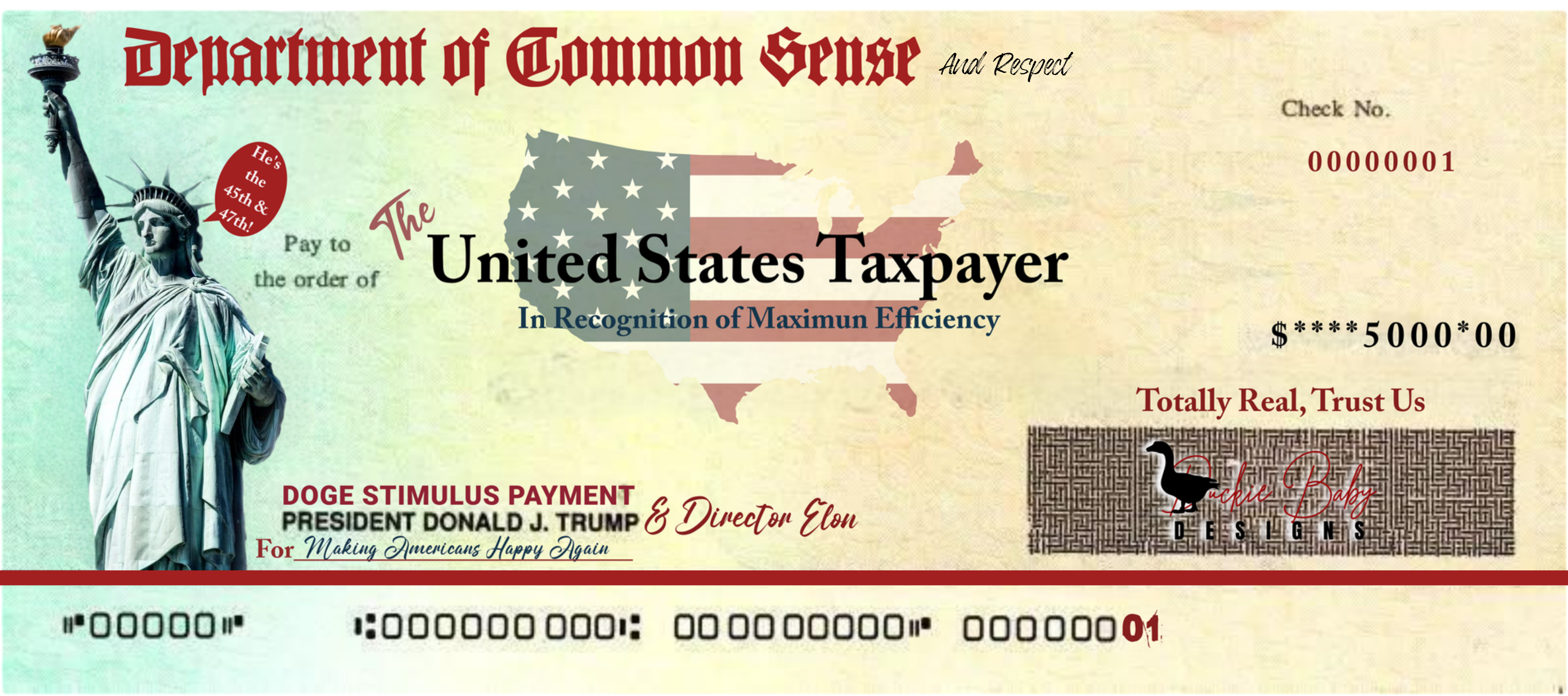Our Stimulus Check T-Shirt is more than just apparel-it's a shared smile and conversation starter. Designed with humor and anticipation, this collection celebrates the much-awaited DOGE (Department of Government Efficiency) stimulus checks. Wear it, share the laugh, and keep the spirit alive while we all wait together!